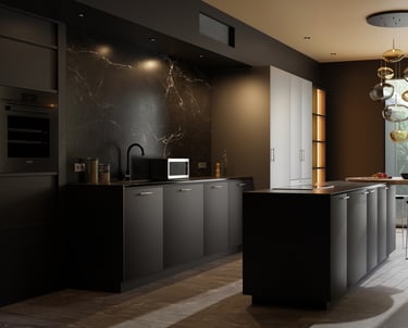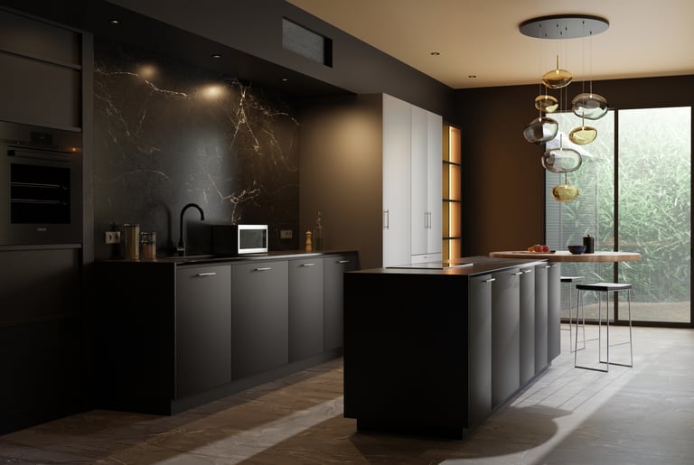 Le G7 est une suspension de galets en verre soufflé. Disposés en grappes à différentes hauteurs, ses éléments aux teintes gris mercure et ambre mordoré captent la lumière et la diffusent dans l’espace. Nous l’avons modélisée avec soin pour mettre en valeur son caractère organique et l’intégrer dans un intérieur, où ses reflets contrastent avec l’élégance des surfaces sombres.